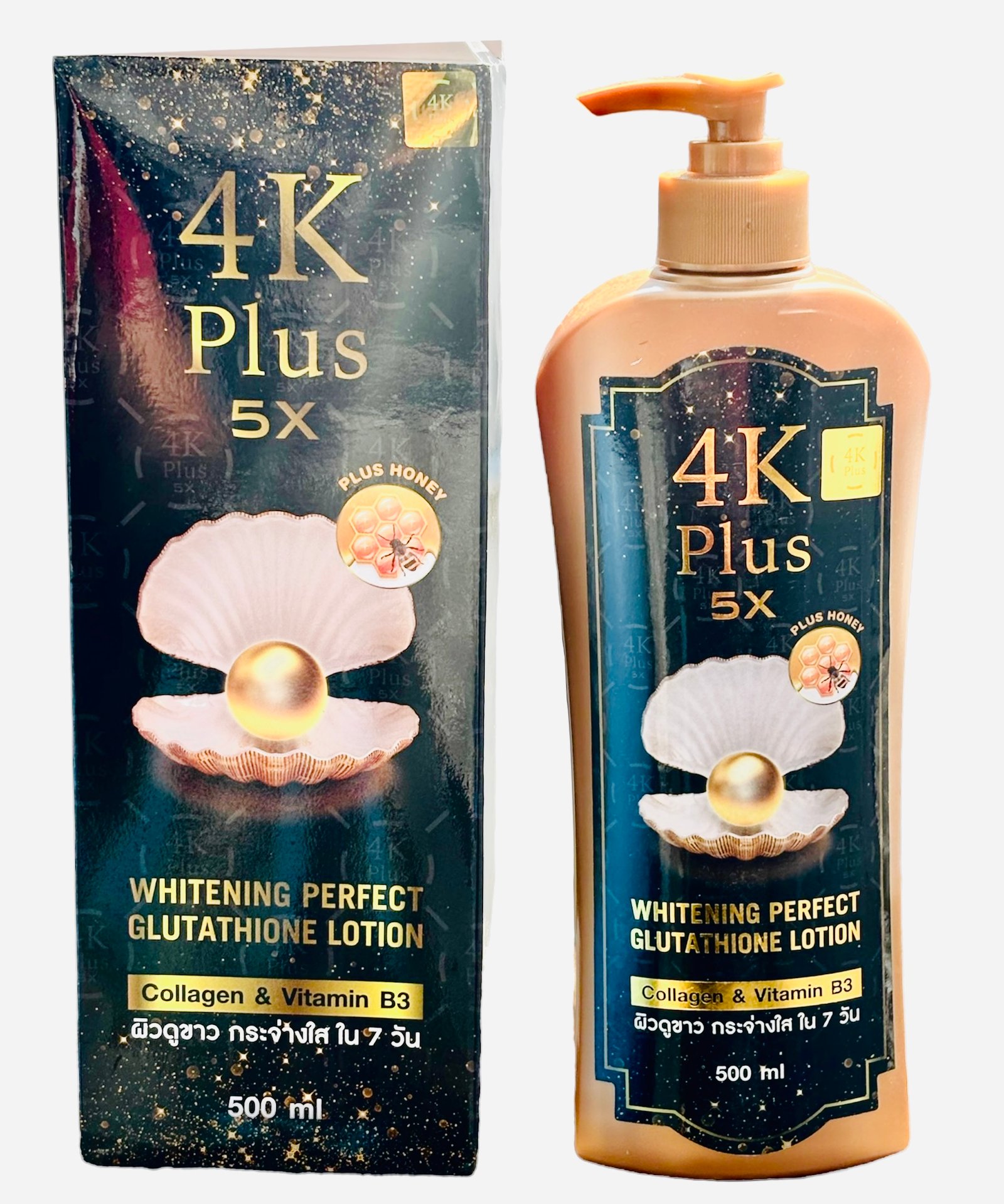 Achieve radiant, even-toned, and glowing skin with 4K Plus Brightening Cream 5X Body Lotion β€” a powerful, fast-absorbing formula designed to improve the appearance of dark spots, promote a more even skin tone, and deeply moisturize your skin. Enriched with skin-loving ingredients and glow-enhancing agents, this 500ml lotion provides full-body care, leaving your skin smoother, softer, and visibly more radiant with regular use. ✨